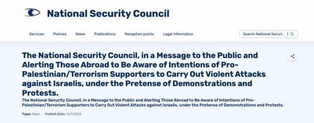 以色列国家安全委员会发布的国外旅行警告截图
