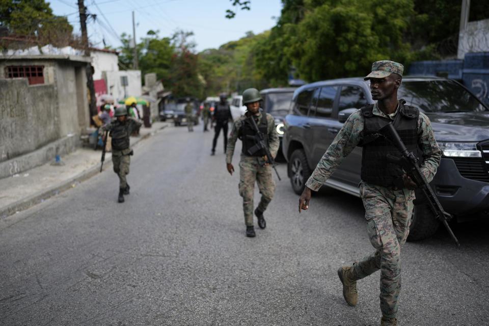4月25日,在海地首都太子港,士兵在总理府附近巡逻。新华社/美联