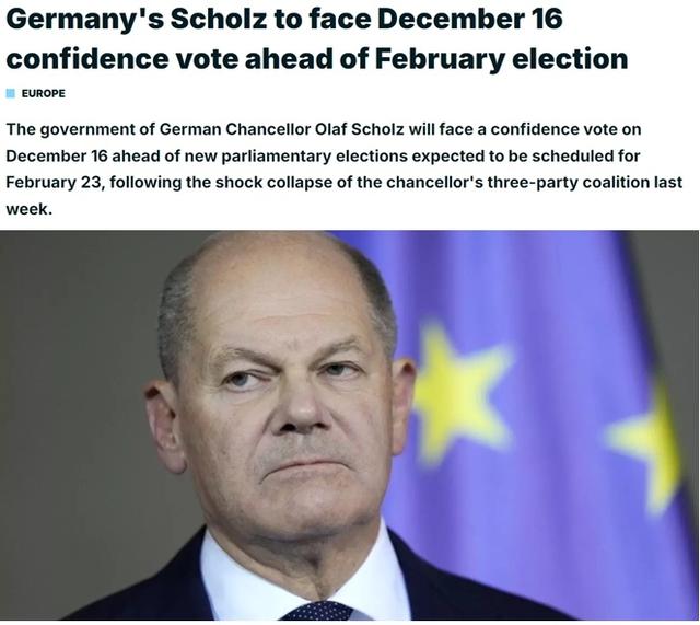 德国媒体分析说,目前领导少数派政府的朔尔茨恐难获得过半数支持票从而通过信任投票。而根据社民党和在野的联盟党达成的协议,在未能通过信任投票的情况下,朔尔茨将建议总统解散议会,并将原定于明年9月28日举行的联邦议院选举提前至明年2月23日。