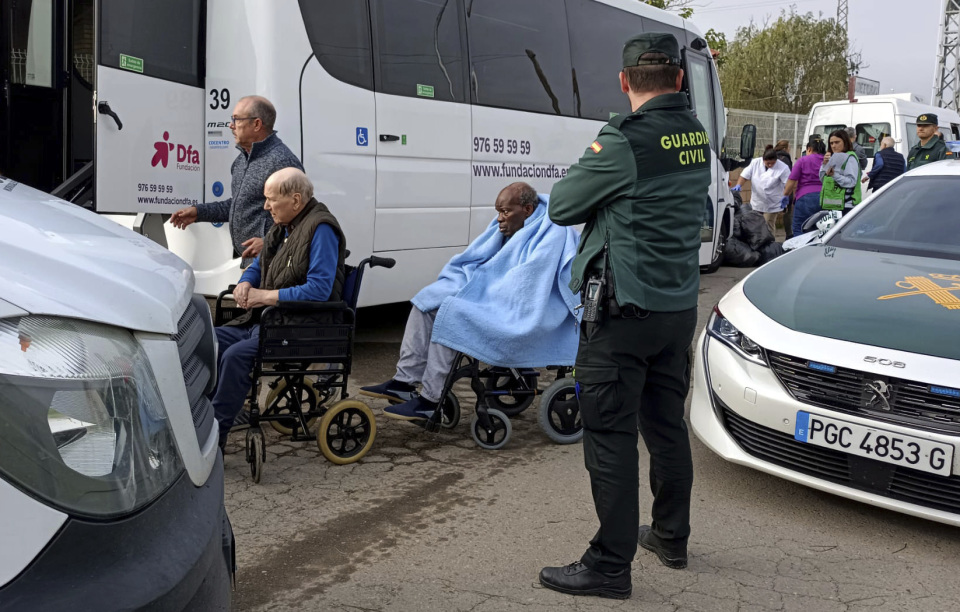 11月15日,在西班牙东北部萨拉戈萨省,人们从发生火灾的养老院撤离。新华社/美联