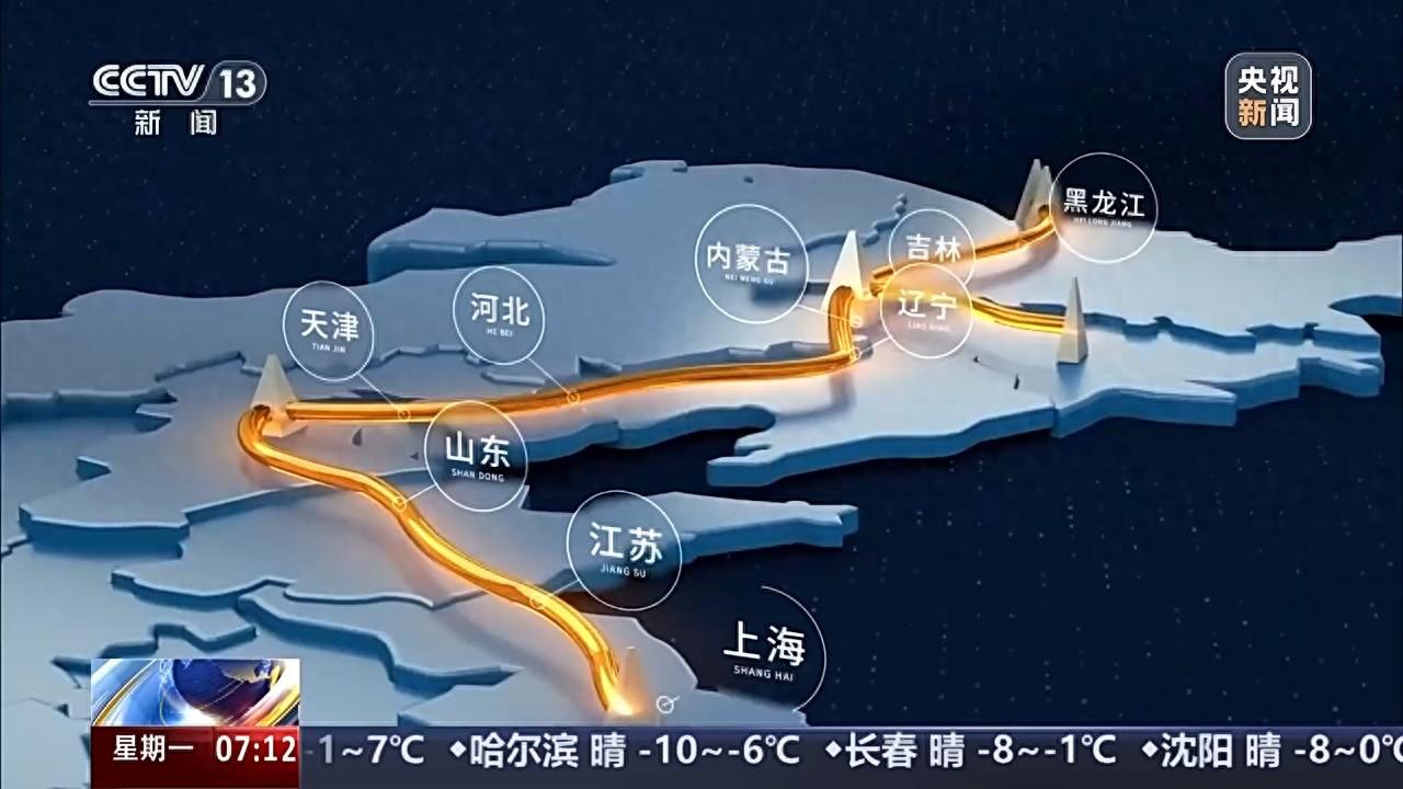 管道设计输量380亿立方米/年,是目前世界上单管输量最大的长输天然气管道。全线贯通后,每年可向东三省、京津冀、长三角等地区稳定供应天然气380亿立方米,可满足1.3亿户城市家庭一年的用气需求,每年可减少二氧化碳排放量1.64亿吨,减少二氧化硫排放量182万吨,为优化我国能源消费结构、推动发展方式绿色转型、助力实现“双碳”目标作出重要贡献。