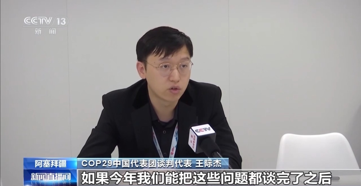 COP29中国代表团谈判代表王际杰:如果今年我们能把这些问题都谈完了之后,绝大多数的技术问题就已经能得到比较好的解决。从我个人的感觉来看,至少目前,大家都是在奔着完成谈判的这个目标去努力,而且今年的的确确大家的谈判氛围比往年更好,所以这也为我们最后大会能达成相应的积极成果提供了一个基本的条件。