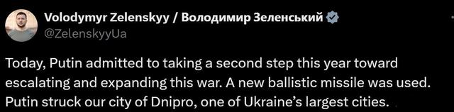 当天早些时候,乌克兰空军曾在社交媒体上发文称,俄军当天早上使用包括洲际弹道导弹在内的多款导弹袭击了乌克兰第聂伯罗市的关键基础设施和企业。