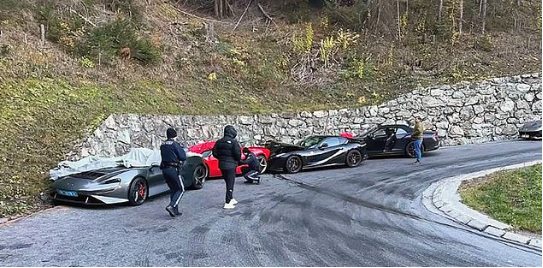 近日,在奥地利蒂罗尔州普丰兹附近的一条山路上,两辆法拉利、一辆迈凯轮和一辆宾利相撞,四车总价值达600万英镑(约人民币5528.4万元)。