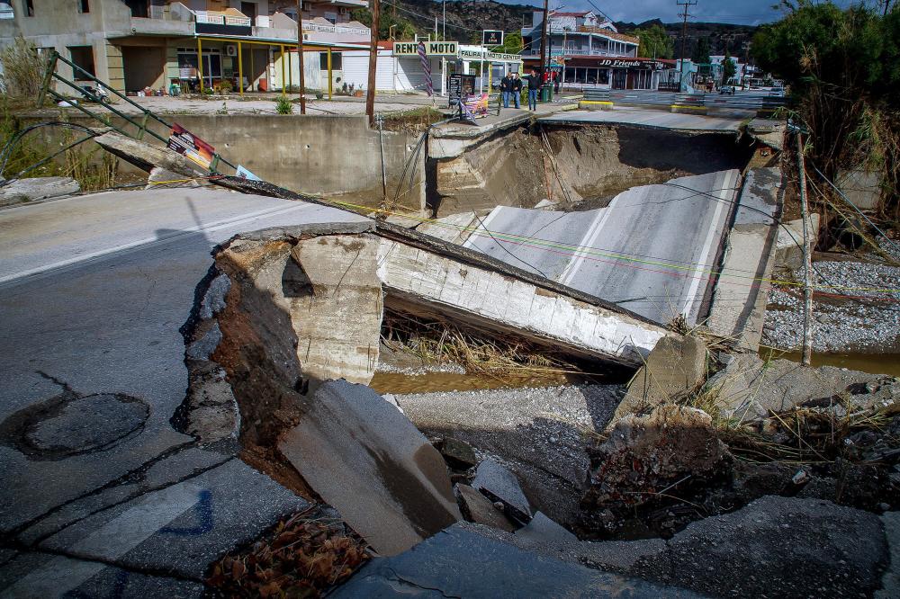12月1日,在希腊罗得岛,一座桥梁在暴风雨袭击后坍塌。新华社发(阿伊里斯摄)
