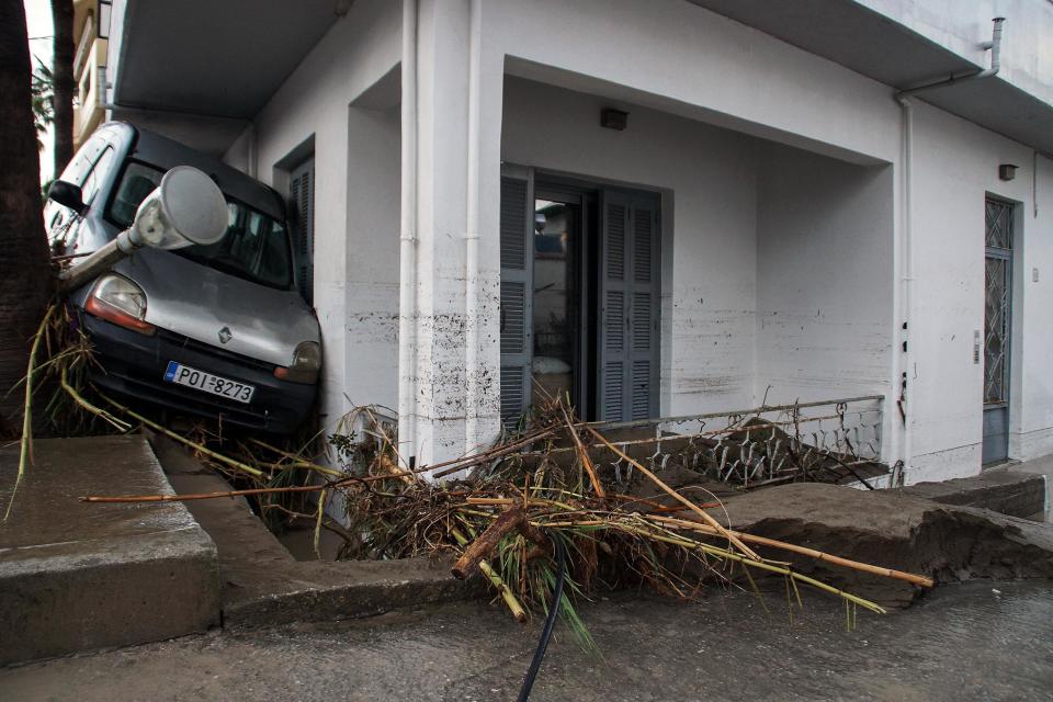 12月1日,在希腊罗得岛,被洪水卷走的车辆散落街头。新华社发(阿伊里斯摄)