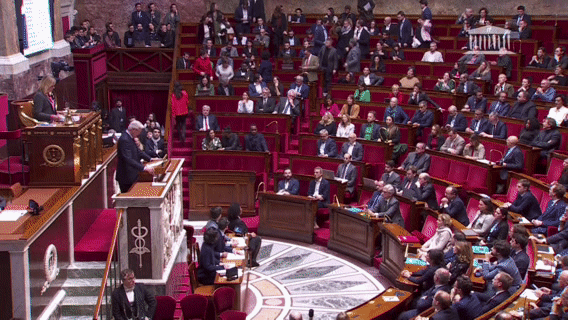 △法国总理巴尼耶12月2日在国民议会讲话过程中,左翼党派议员纷纷离席