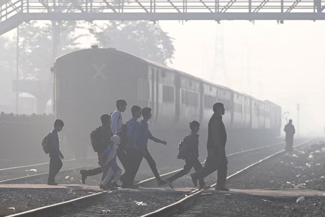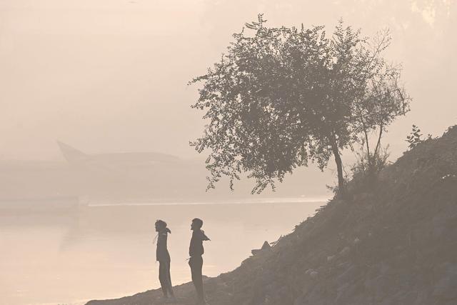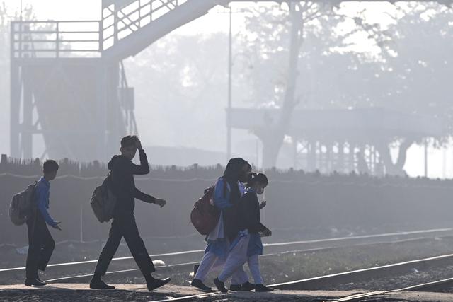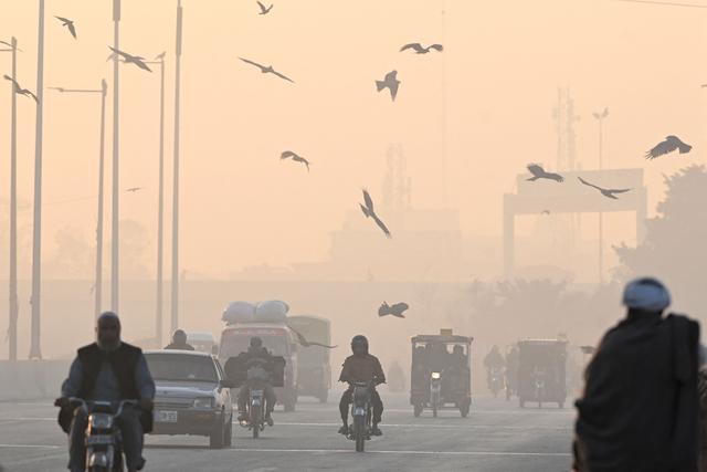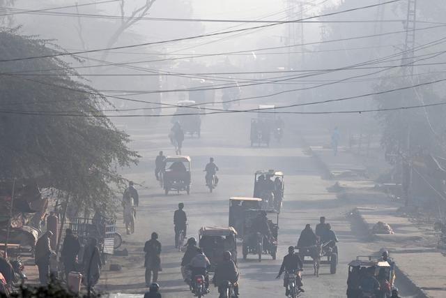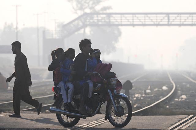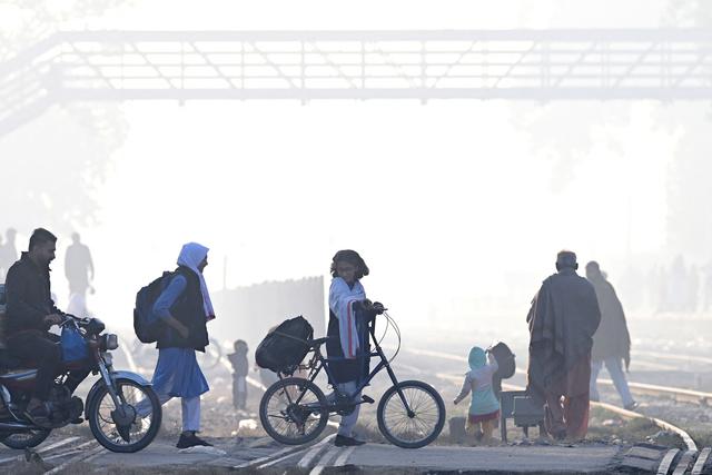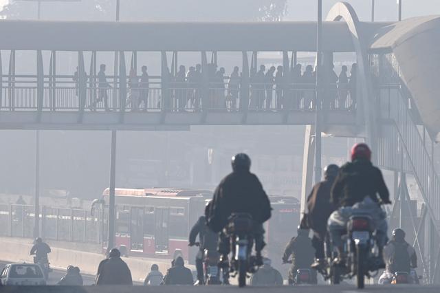 12月5日,在巴基斯坦拉合尔,人们在雾霾中出行。新华社/法新