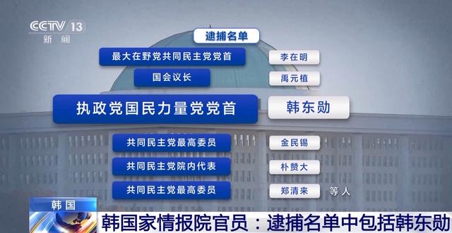 韩国国家情报院官员:逮捕名单中包括韩东勋