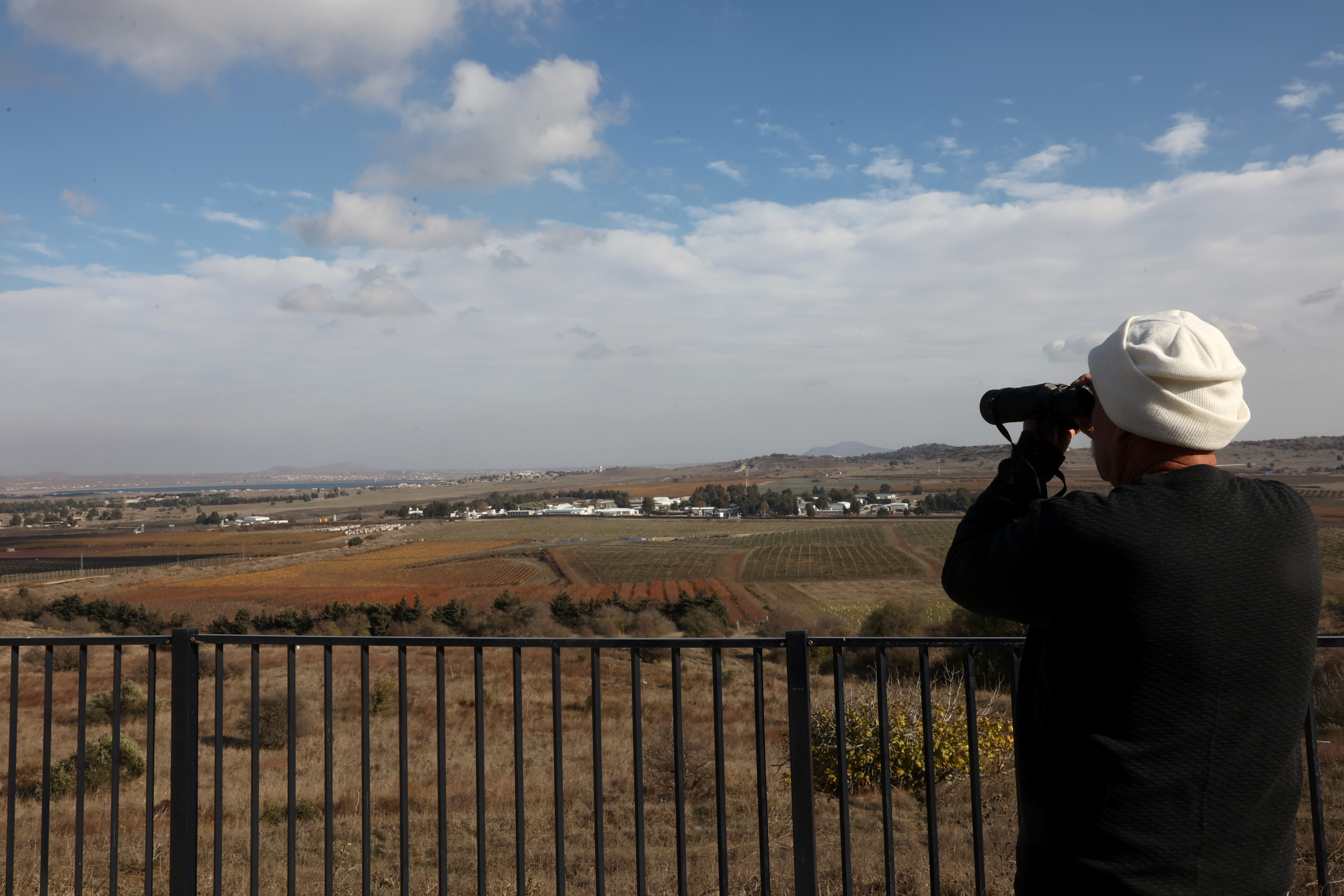 12月8日,在以色列占领的戈兰高地,一名男子遥望叙利亚部分地区。 新华社发(吉尔·科恩·马根摄)