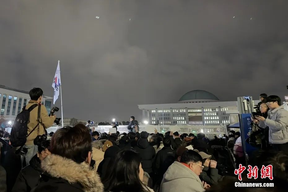 ▲当地时间12月3日晚,韩国总统尹锡悦发布紧急戒严令。韩国国会4日凌晨召开全体会议,通过决议要求解除紧急戒严令。图为大批民众聚集在韩国国会门口。中新社记者 刘旭 摄