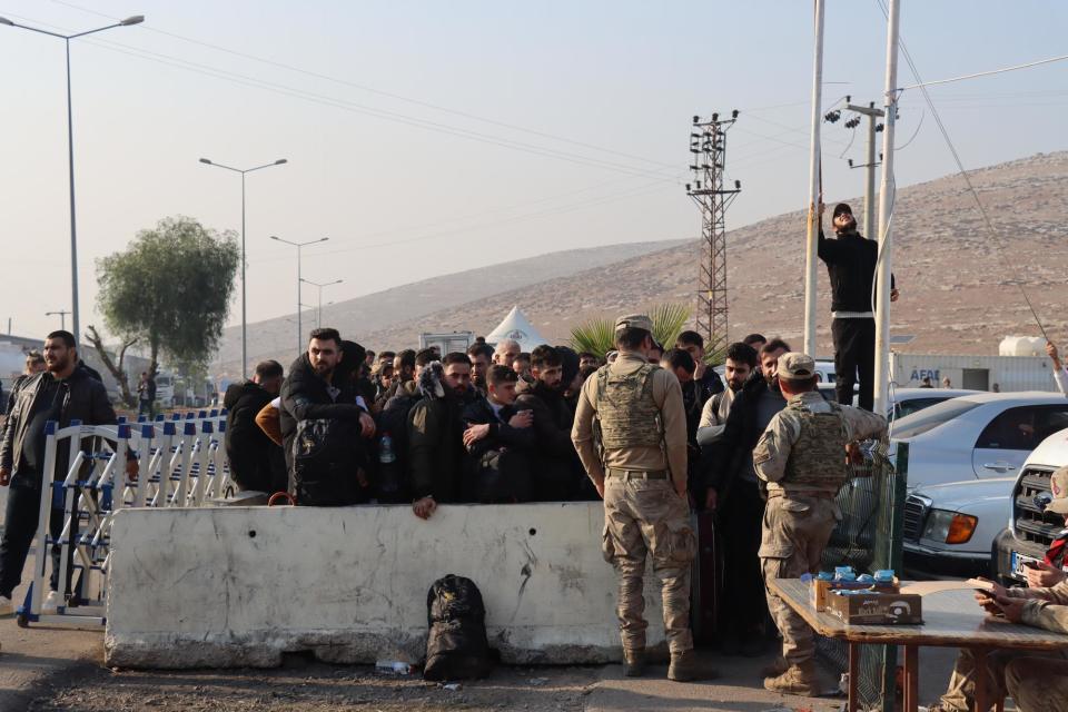 12月10日,人们等待通过土耳其南部哈塔伊省的奇尔韦格聚过境口岸进入叙利亚。新华社发(穆斯塔法·卡亚摄)