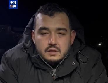 △刺杀俄三防部队司令嫌疑人接受俄执法部门审讯时的画面