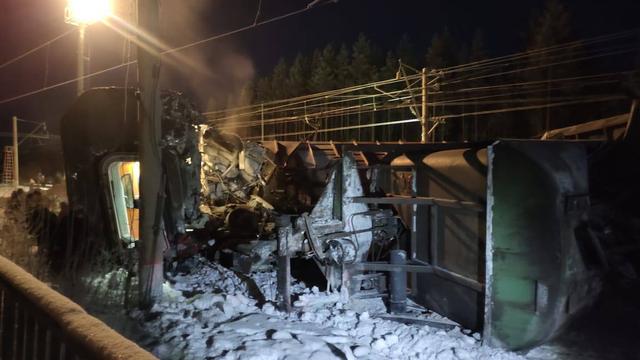 18日晚,俄罗斯摩尔曼斯克州南部一列客运列车与货运列车相撞。有消息称,该客运列车上乘客数量超过300人。(总台记者 王斌)