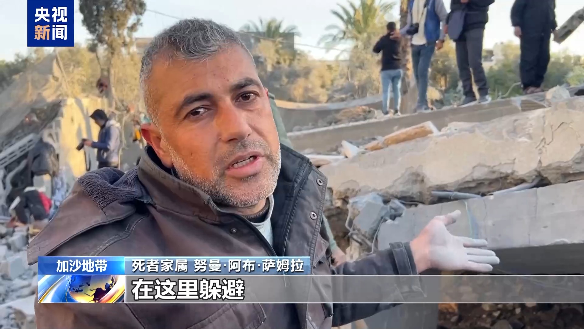 死者家属 努曼·阿布·萨姆拉:袭击发生时我们和其他人一样在这里躲避。天花板倒塌在我们身上,我觉得那像是炸药桶而不是导弹。孩子们还被埋在废墟下,我们正在找他们,他们五个人一起睡在客厅里。