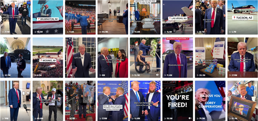 △特朗普TikTok账号截图,内容几乎均与竞选相关