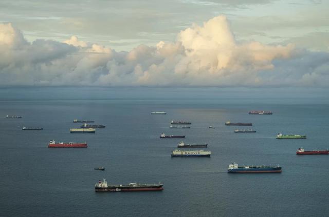 △6月28日,在巴拿马城,货船等待通过巴拿马运河。