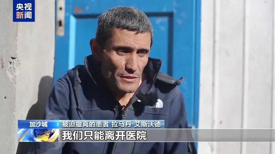 被迫撤离的患者 拉马丹·艾斯沃德:他们(以军)告诉他(医院院长),你和你身边的医务人员,以及医院里所有与你在一起的人,包括流离失所者、病人和伤者都应该自首。我们只能离开医院,以军勒令我们脱掉衣服,只穿内衣,我们只能脱了衣服,只穿内裤。早上7时30分左右出发,步行到(以军的)检查站,距离医院有两到三个小时的路程。