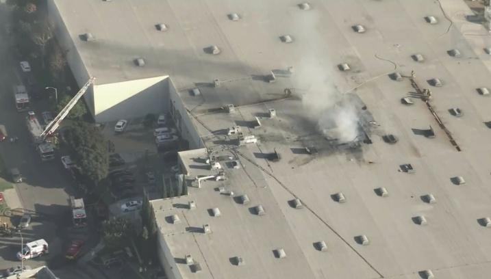 △一架小飞机1月2日在富勒顿市撞到一栋建筑物(图源:美国广播公司)