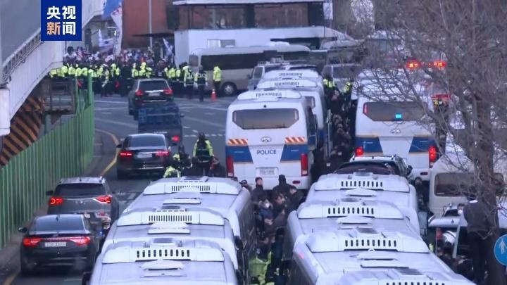 8时04分左右,调查人员开始执行对尹锡悦逮捕令。调查官和警察步行通过了总统官邸前设置的路障,之后通过了总统警卫处设置的公交车车墙,随后与总统警卫处发生对峙和肢体冲突。
