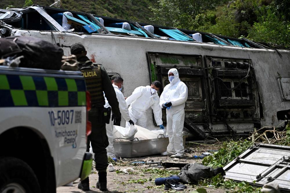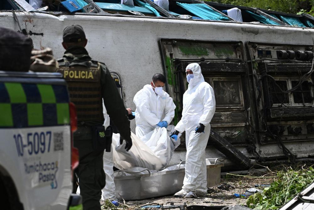 1月3日,在哥伦比亚帕斯托附近的坦瓜,法医在事故现场检查尸体。新华社/法新