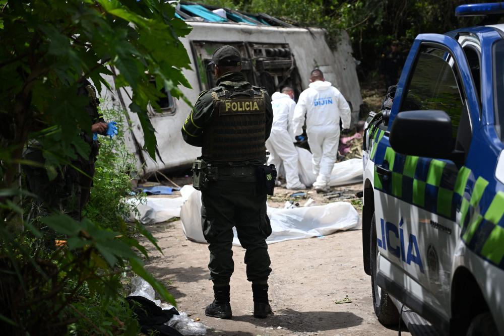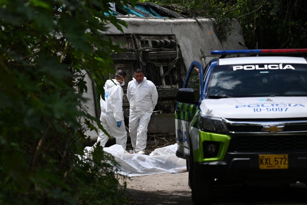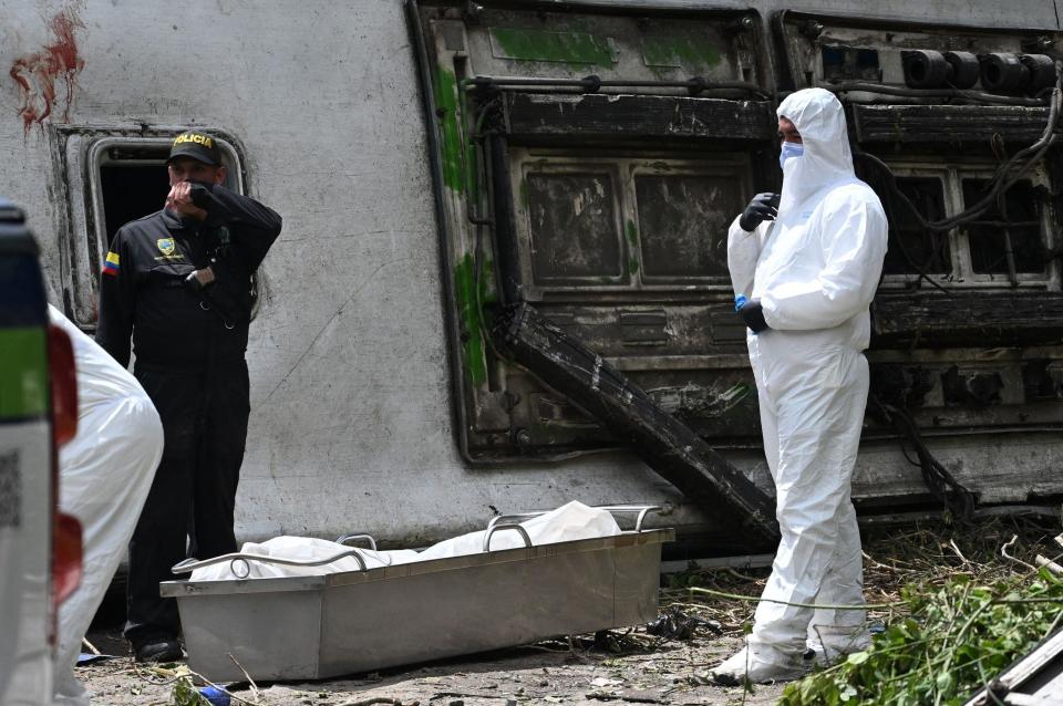 1月3日,在哥伦比亚帕斯托附近的坦瓜,警察和法医在事故现场开展工作。新华社/法新