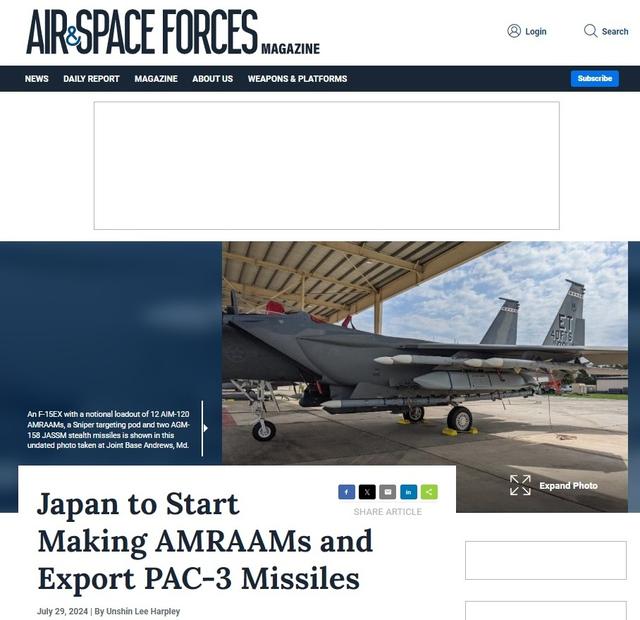 而除了向美国求购超千枚导弹之外,日美两国此前在2024年7月还宣布,根据协议日本将可在国内生产“先进中程空空导弹”。