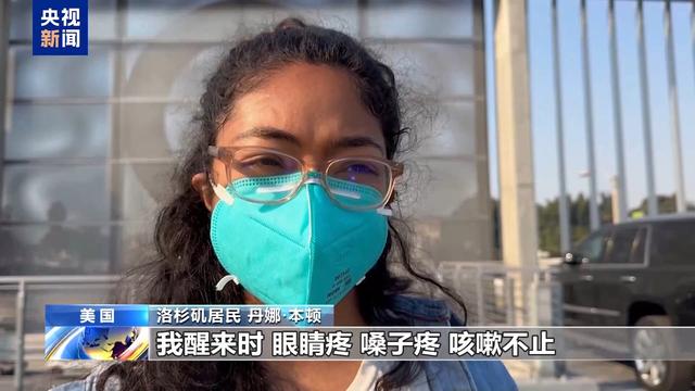 洛杉矶居民 丹娜·本顿:我醒来时,眼睛疼、嗓子疼、咳嗽不止,我还有朋友说流鼻血了,太可怕了。我睡觉时都戴着口罩。