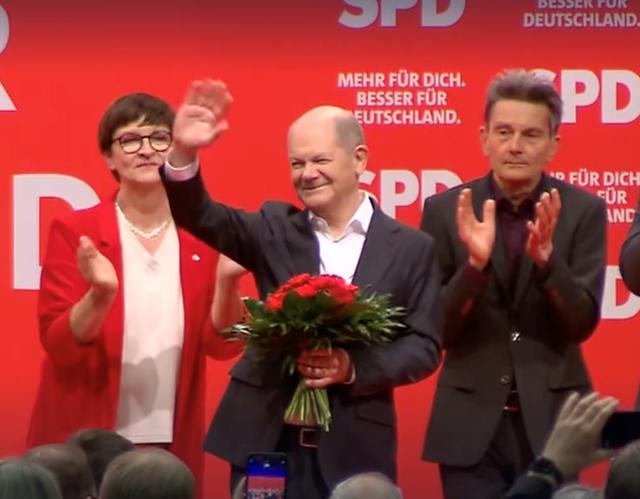 当地时间1月11日,德国执政党社会民主党和极右翼政党选择党分别在柏林和里萨市举行党代表大会。两党分别选举朔尔茨和魏德尔为各自的总理候选人。