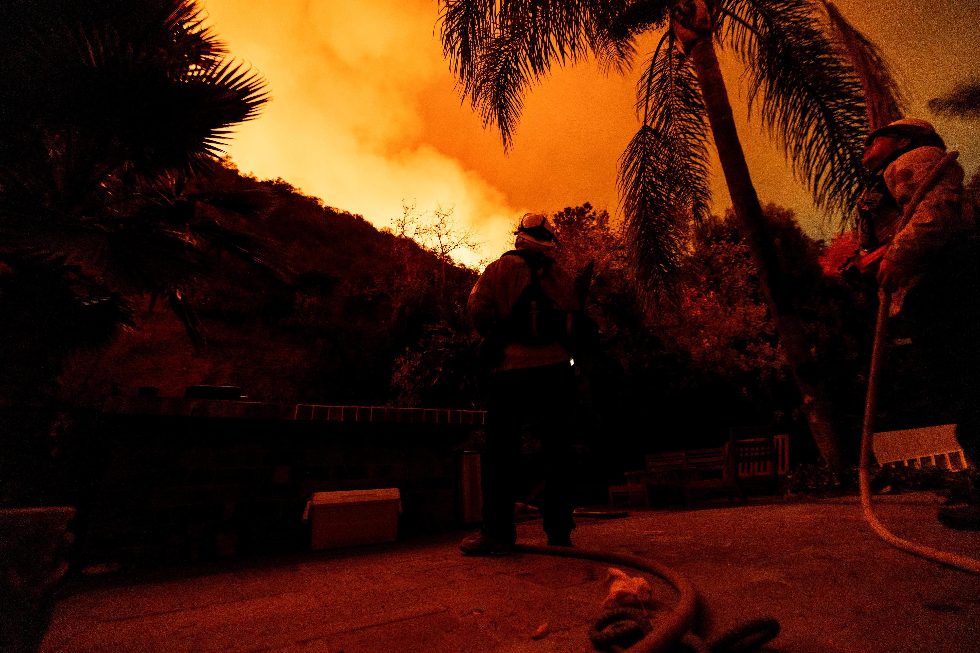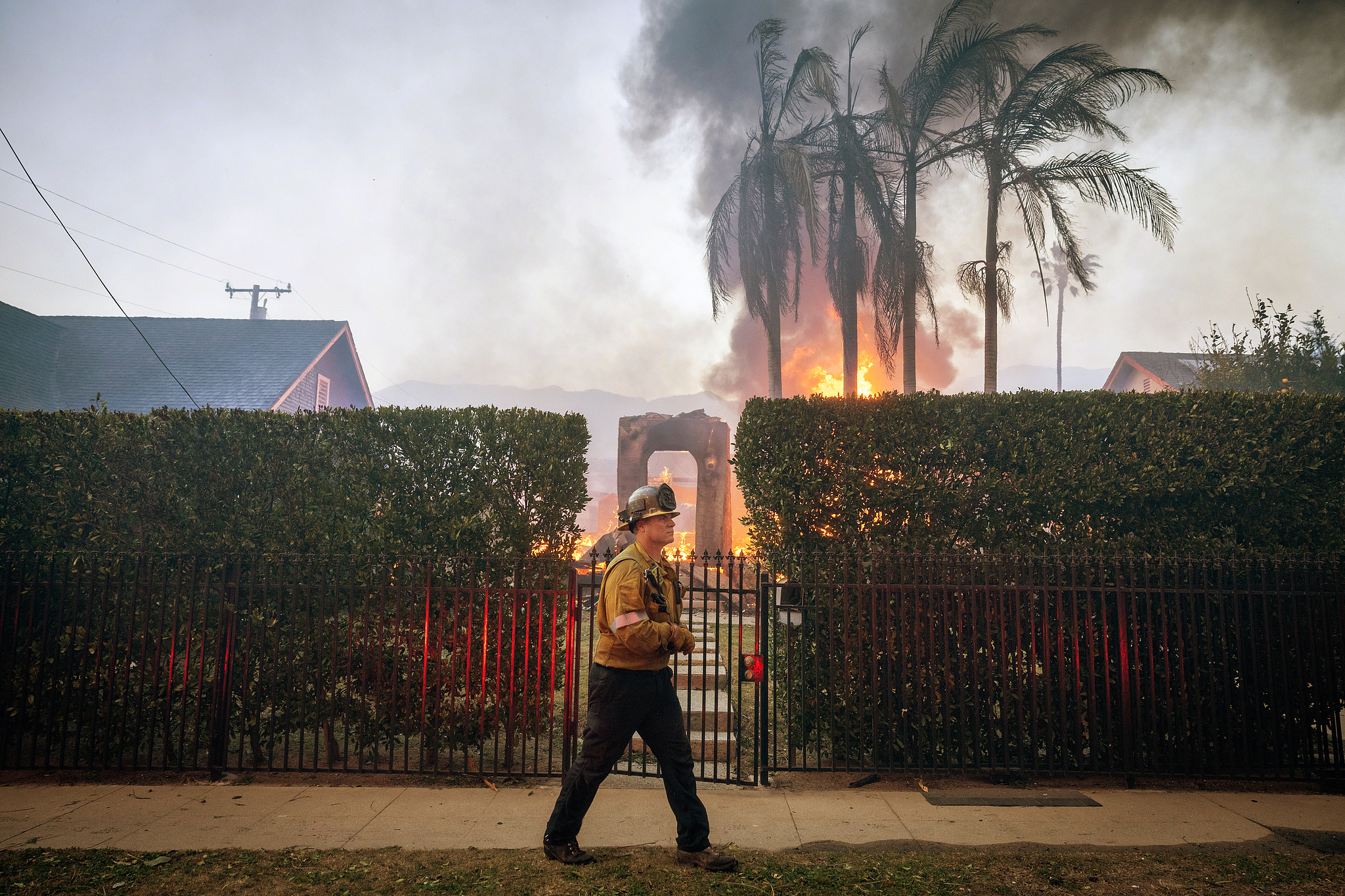 在山火逼近时,居住在洛杉矶的美国演员塞巴斯蒂安·哈里森记录下自己的住所被大火烧毁、自己因未及时撤离差点被迫跳海逃生的视频。