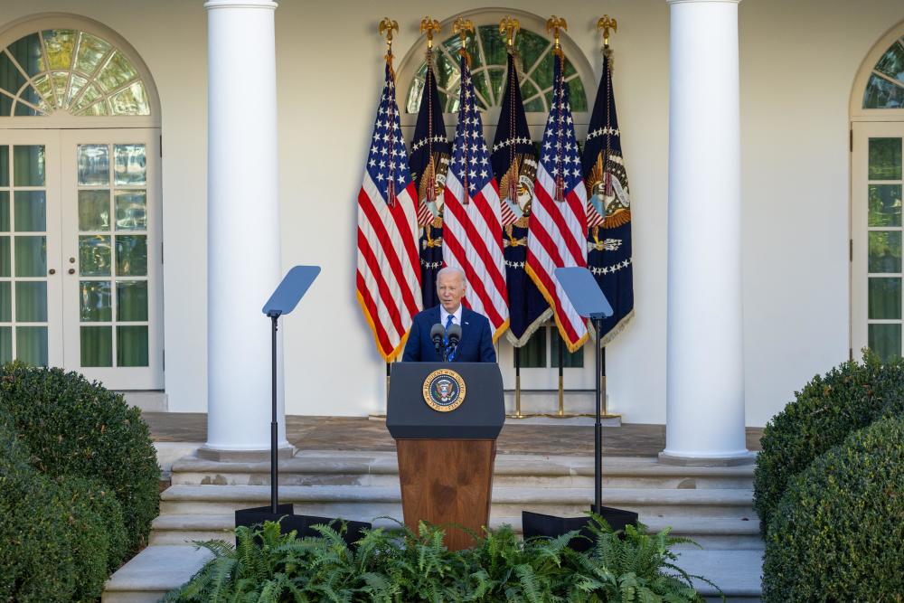 2024年11月26日,美国总统拜登在华盛顿白宫发表讲话。新华社记者胡友松摄