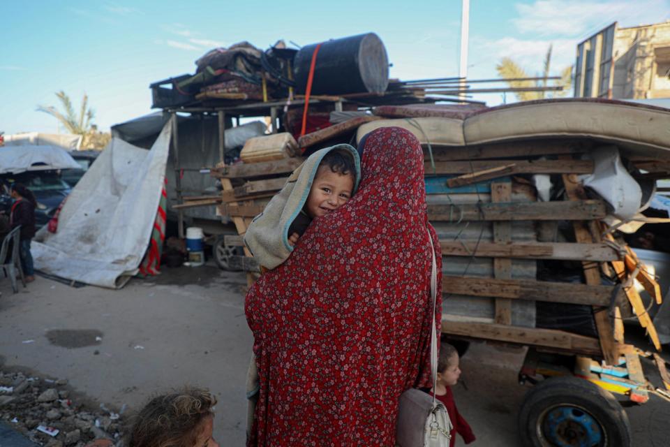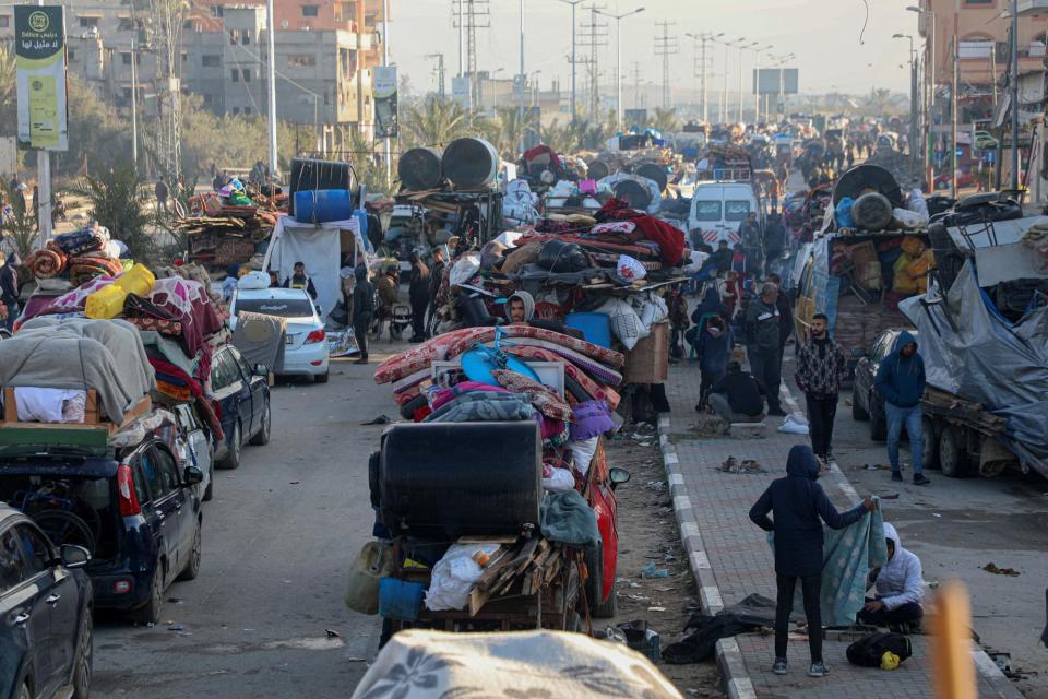 这是1月26日在加沙地带中部努赛赖特难民营拍摄的希望返回加沙地带北部的流离失所者。新华社发(里泽克·阿卜杜勒贾瓦德摄)