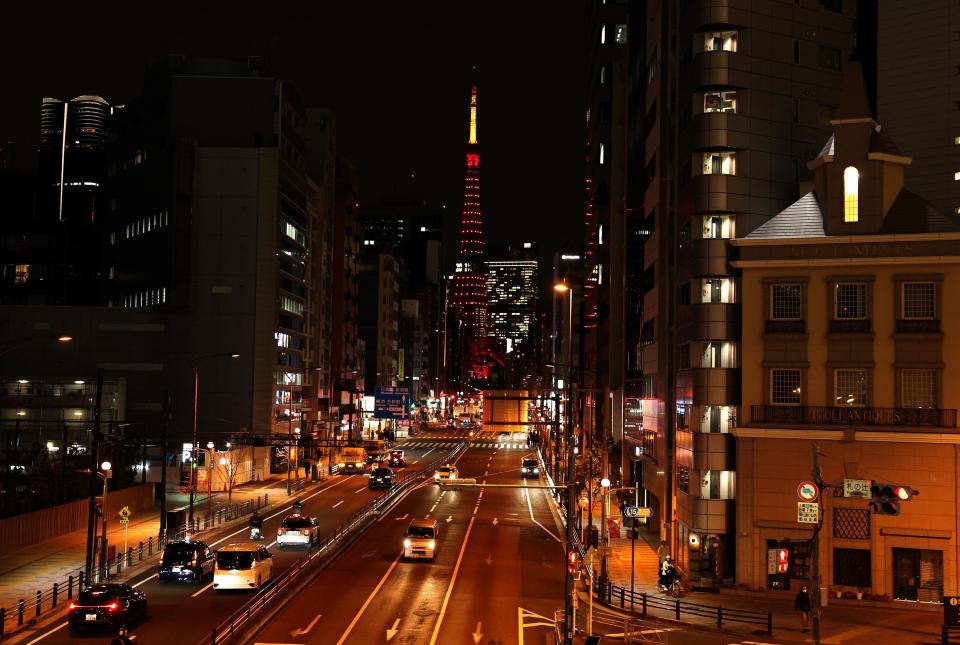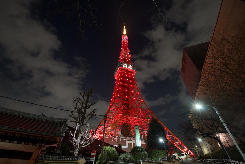 1月28日晚,日本东京的地标性建筑东京塔点亮“中国红”,庆祝中国农历新年。(新华社记者贾浩成摄)