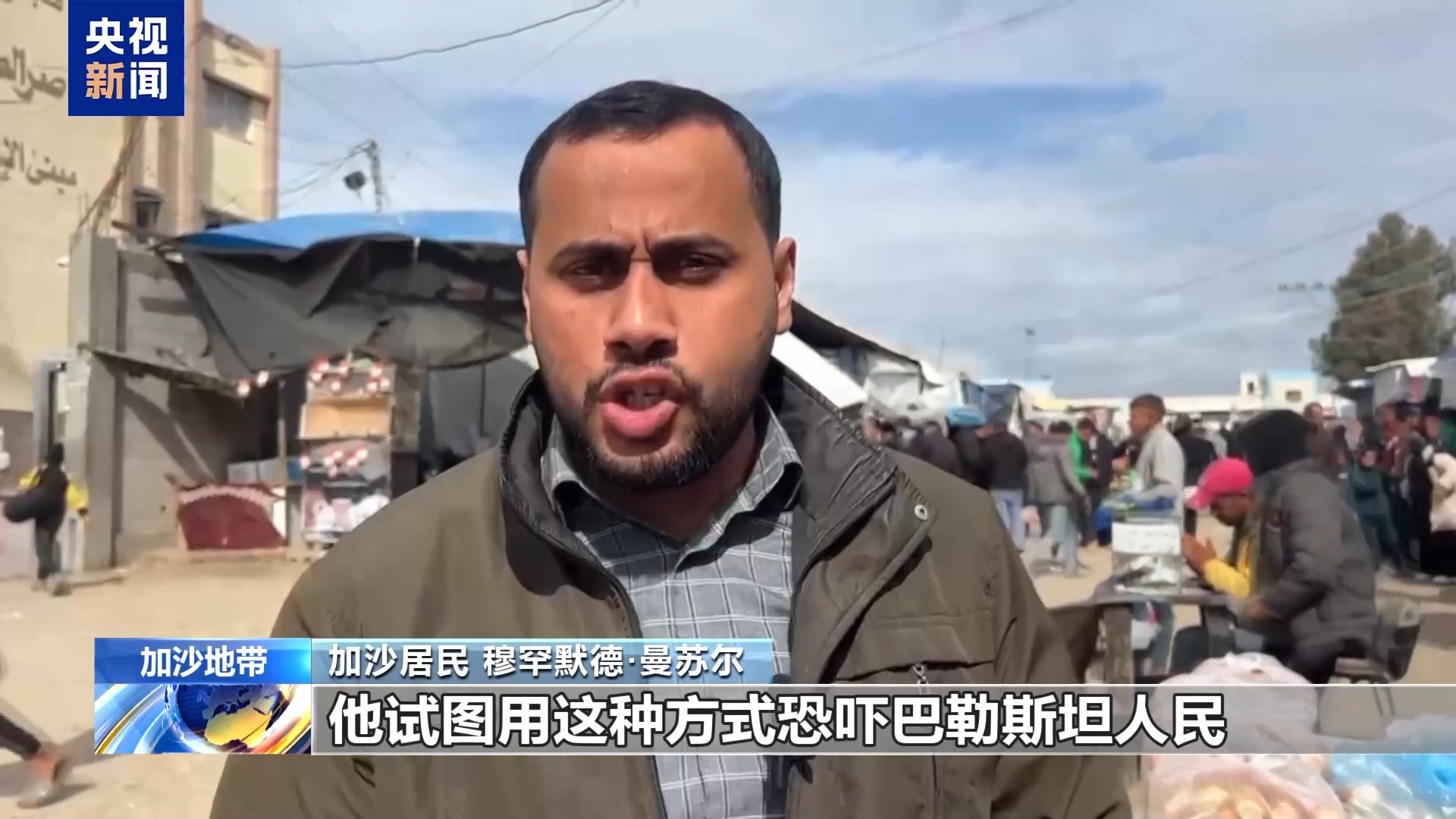 加沙居民 穆罕默德·曼苏尔:我们对特朗普的言论感到非常震惊,他试图用这种方式恐吓巴勒斯坦人民,用强力镇压和强制迁徙来威胁巴勒斯坦人民。作为巴勒斯坦人,我们不会离开这片土地,他们在战争中没有实现的目标,通过政治手段也得不到。