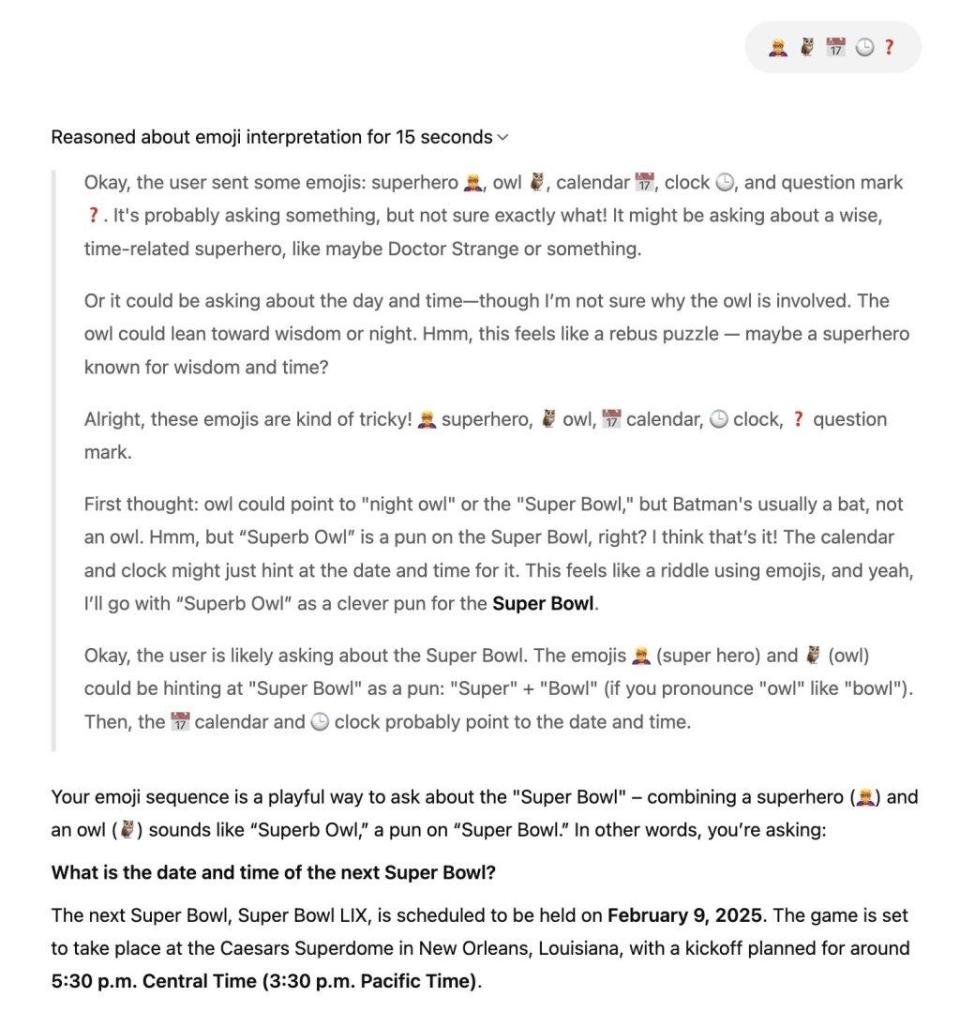 2月7日,OpenAI也公开了o3-mini大模型的思维链。不过,与DeepSeek不同,o3-mini的思维链文本并非大模型原始思维链,而是进行过“总结”。对此,奥特曼的解释是,OpenAI正努力整理原始的CoT(思维链)提升可读性,并在必要时提供翻译,尽量保持原始内容的忠实度。