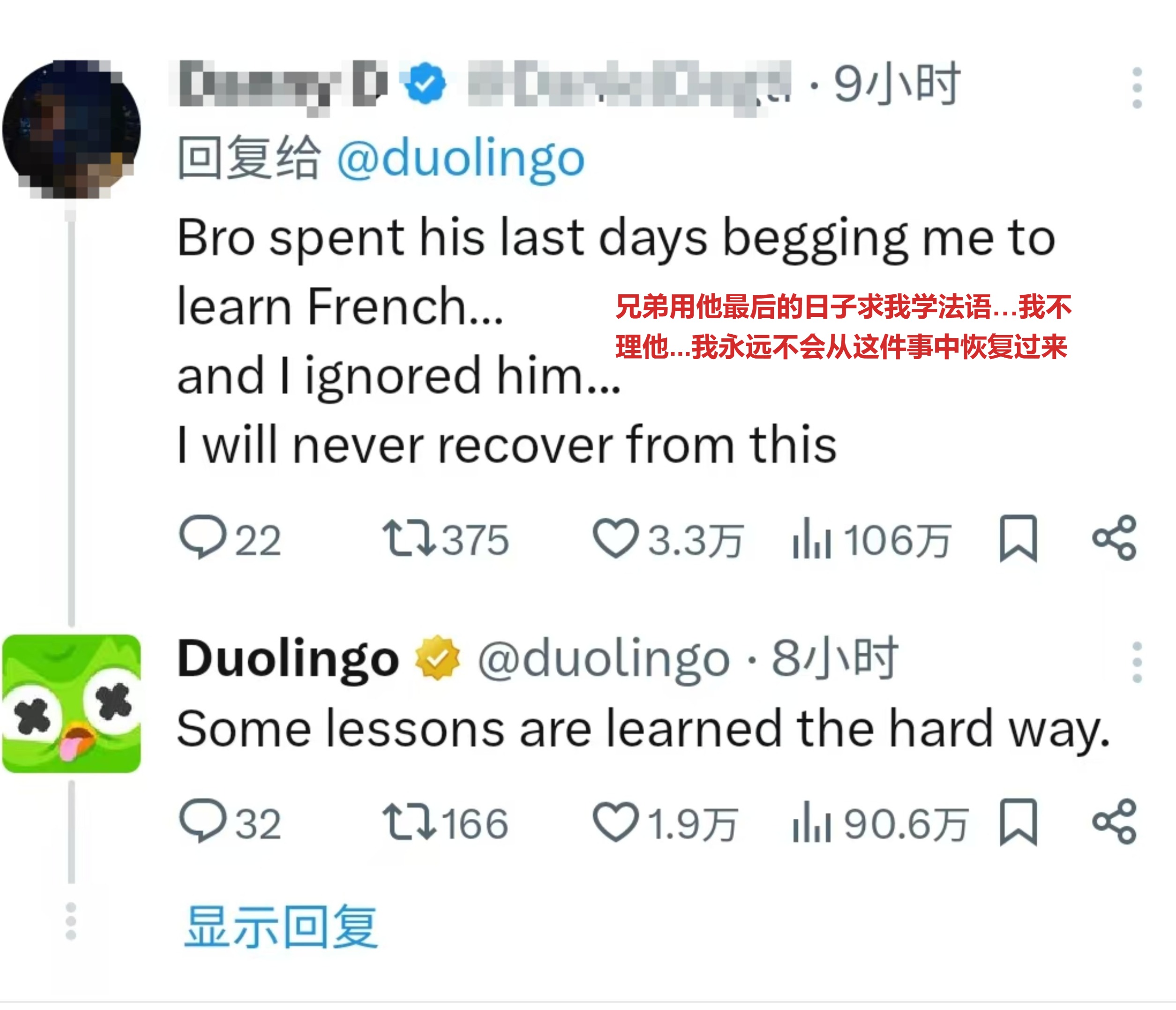 新来的粉丝可能不知道情况,信以为真,连忙打开自己的多邻国app,发现仍能正常使用。但是已经熟悉多邻国的老粉已经开始接招了,一脸严肃地陪多邻国官推“演戏”,演技精湛,效果拉满,堪比“奥斯卡影帝”。