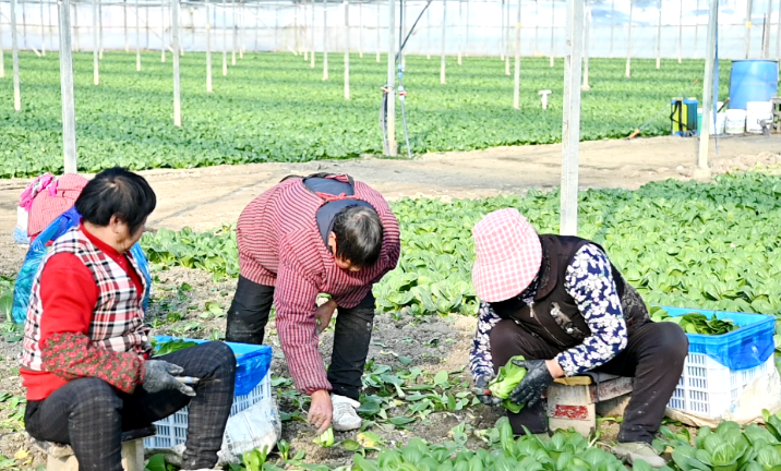 新鲜的蔬菜不仅丰富了百姓餐桌,也让曾经的“冬闲”变“冬忙”。对于当地村民而言,除了流转土地获取租金外,也得到了大量且可持续的就业岗位,鼓起了“钱袋子”。“以前农闲的时候没事干,现在我在这里做工,不耽误照顾家庭的同时,每天还能有近百元的收入,真的太好了。”附近村民蔡朝萍笑得很开心。