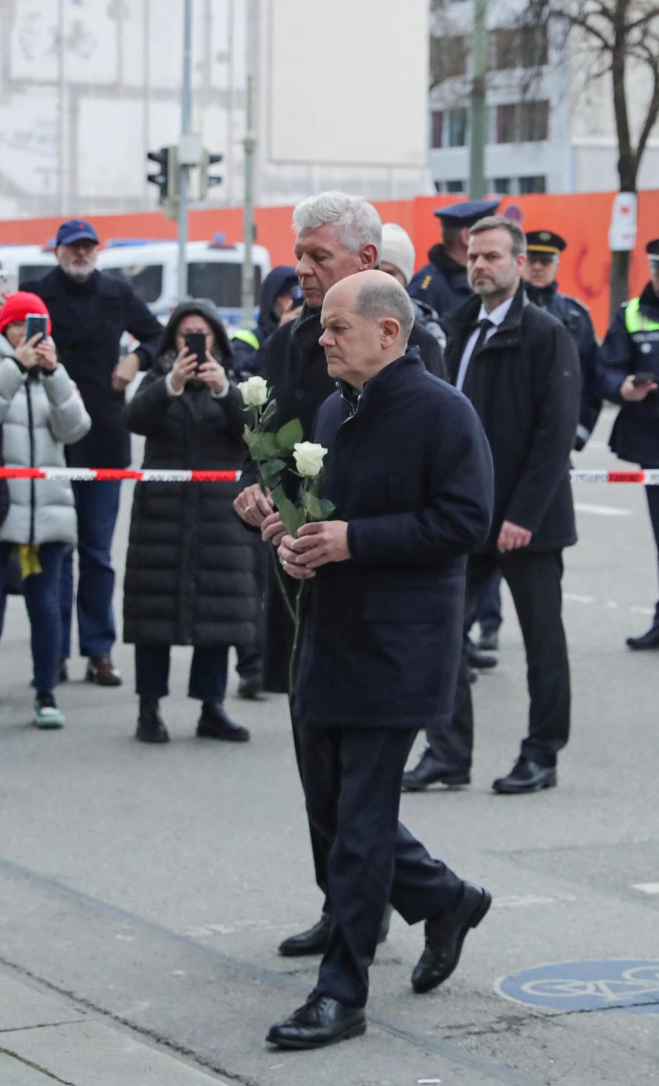 2月15日,德国总理朔尔茨在慕尼黑的事发现场献花。新华社记者 张帆 摄