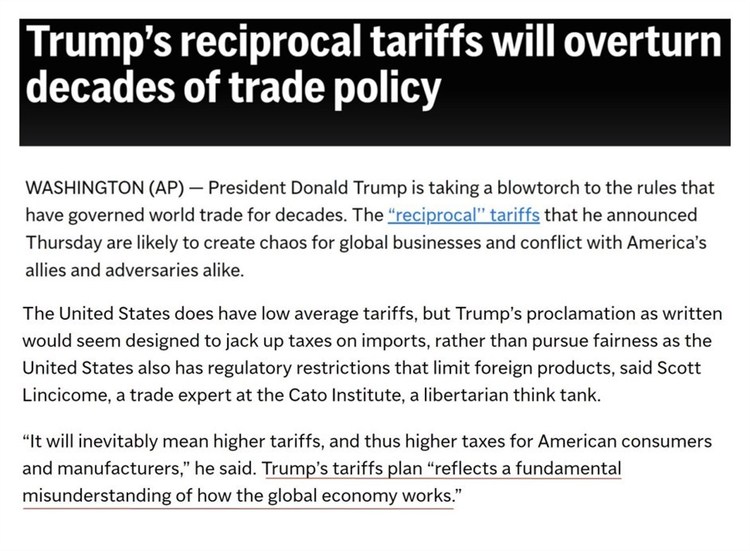 美联社:特朗普的“对等关税”将推翻数十年的贸易政策,给全球企业造成混乱,并与美国的盟友和对手发生冲突
