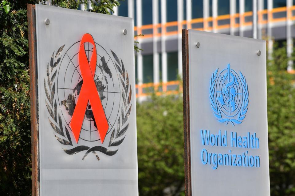 这是2023年7月13日在瑞士日内瓦联合国艾滋病规划署总部拍摄的联合国艾滋病规划署(左)和世界卫生组织标识。新华社记者连漪摄