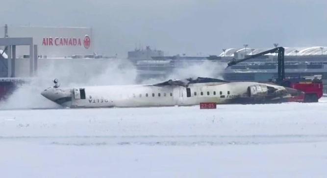 从现场视频来看,飞机机腹朝上,现场有浓烟冒起。事故原因初步认为是恶劣天气。预计事故调查将由加拿大运输安全委员会领导。