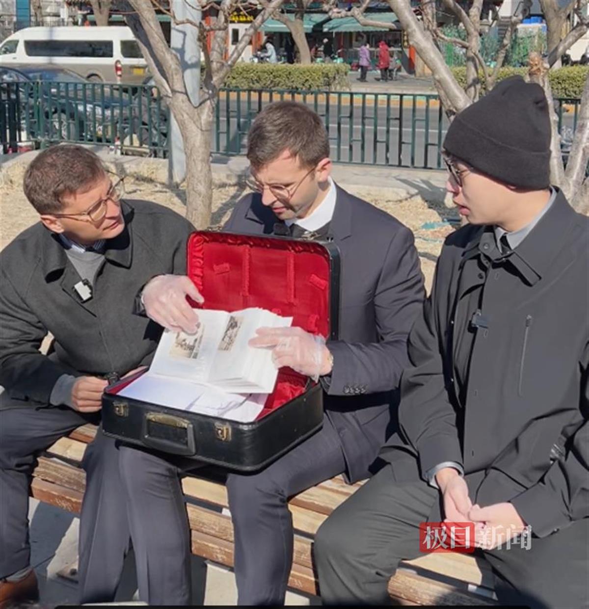 2月18日,极目新闻记者在北京见到了马库斯一行三人。马库斯戴上手套,小心翼翼打开一只略显陈旧的箱子,向记者展示外祖父在上海留下的日本侵华战争照片。