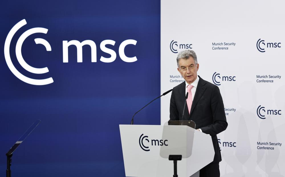 2月14日,慕安会主席克里斯托夫·霍伊斯根在慕尼黑安全会议开幕式上致辞。新华社记者高静摄