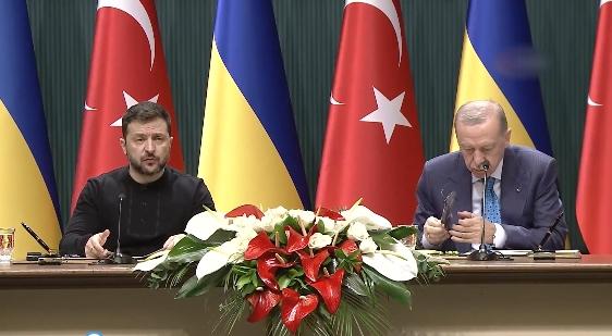 乌克兰总统泽连斯基18日在同土耳其总统埃尔多安会晤后举行联合记者会(伊赫拉斯通讯社提供视频画面)