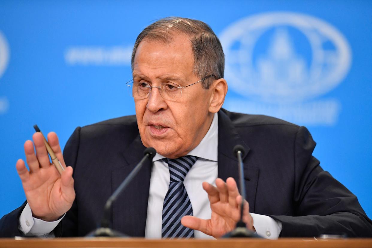 2023年1月18日,俄罗斯外交部长拉夫罗夫在莫斯科举行的年度记者会上回答问题。新华社发(亚历山大摄)