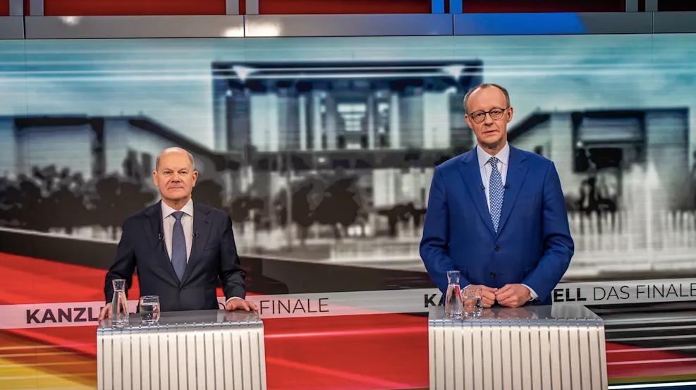 当地时间19日晚,德国现任总理、社民党总理候选人朔尔茨与最大在野党基督教民主联盟(基民盟)主席、联盟党总理候选人默茨进行德国联邦议院选举前的最后一场电视辩论。双方围绕移民政策、经济发展等选民最为关心的议题正面交锋。