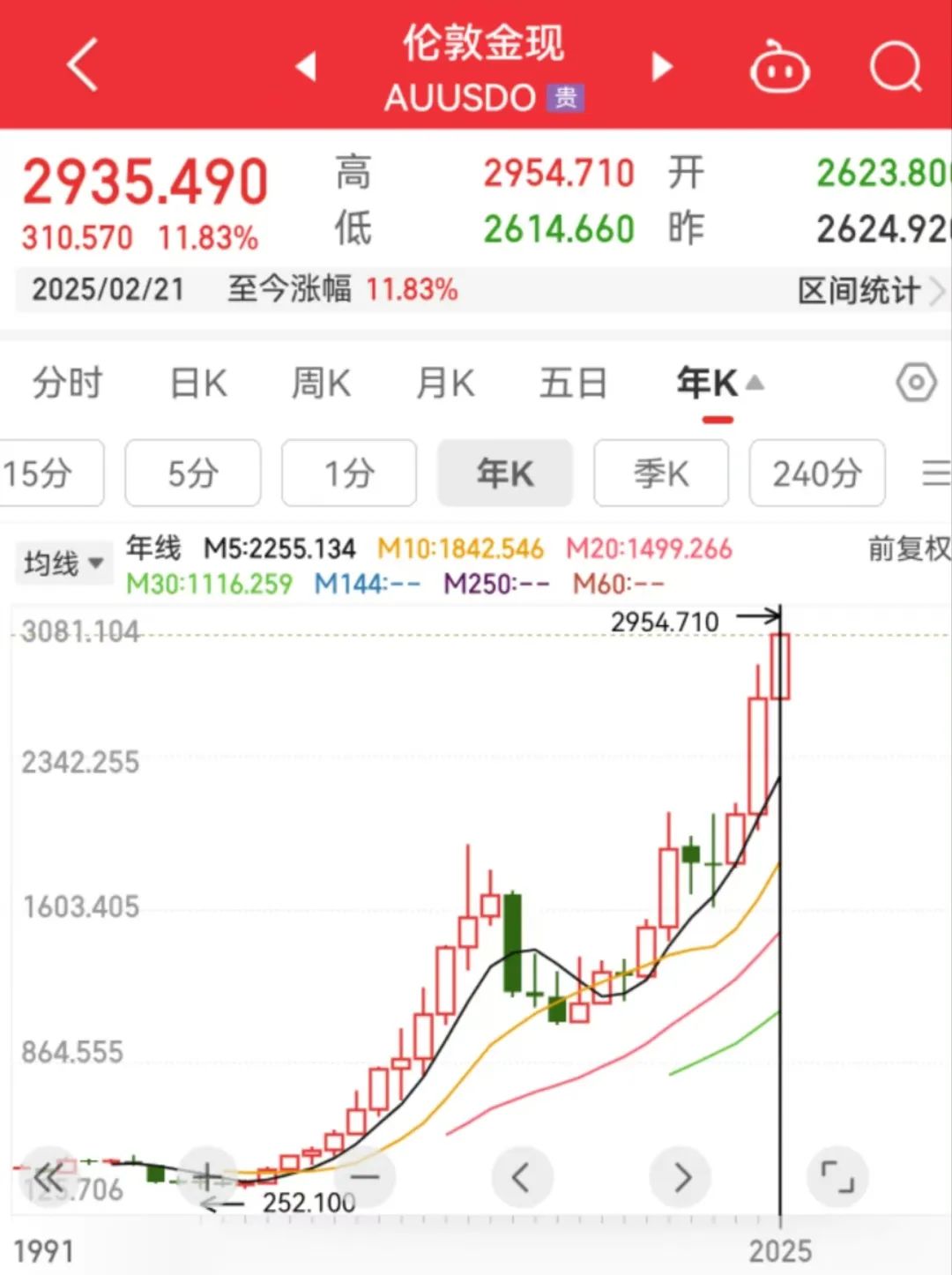 2025年伊始,不到两个月的时间内,国际金价在2024年飙升了27%的基础上,再攀高峰,迄今已经上涨近12%。