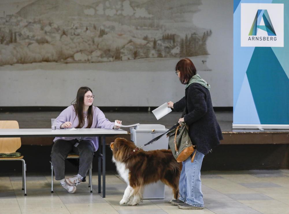 2月23日,在德国北莱茵-威斯特法伦州阿恩斯贝格,选民在一处投票站投票。新华社记者 张帆 摄
