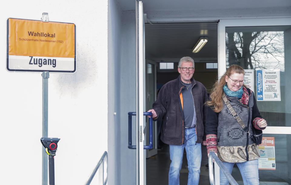 2月23日,在德国北莱茵-威斯特法伦州阿恩斯贝格,选民投票后离开投票站。新华社记者 张帆 摄