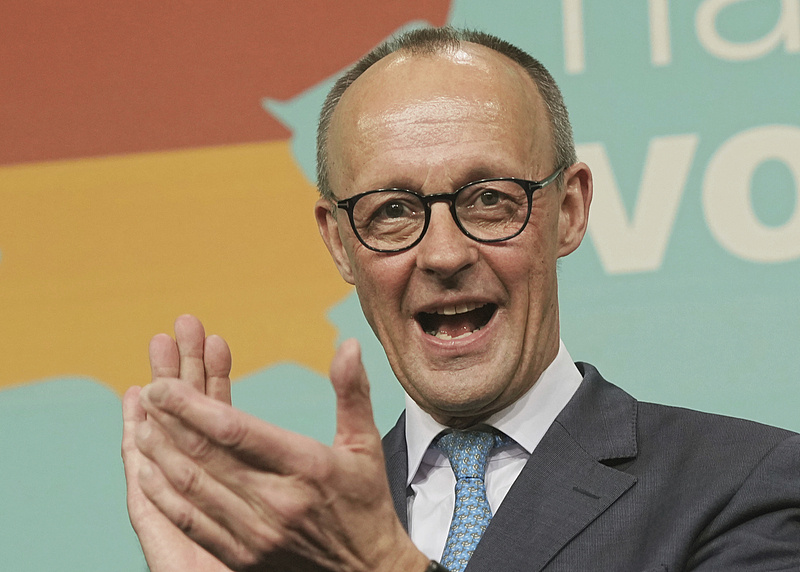 △当地时间23日,媒体公布德国大选出口民调结果后,默茨庆祝胜选。